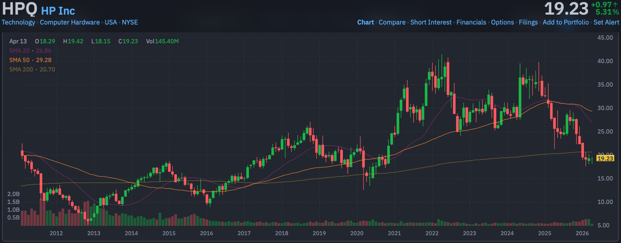 Buffett bought shares at $35 and the stock is now just under $20 — almost 50% cheaper. HP is an interesting, unpopular, large company.